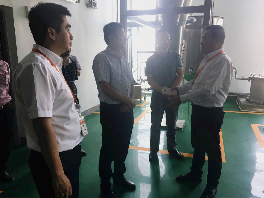 好主人生產(chǎn)部經(jīng)理潘渝鋒給王部長介紹設備情況