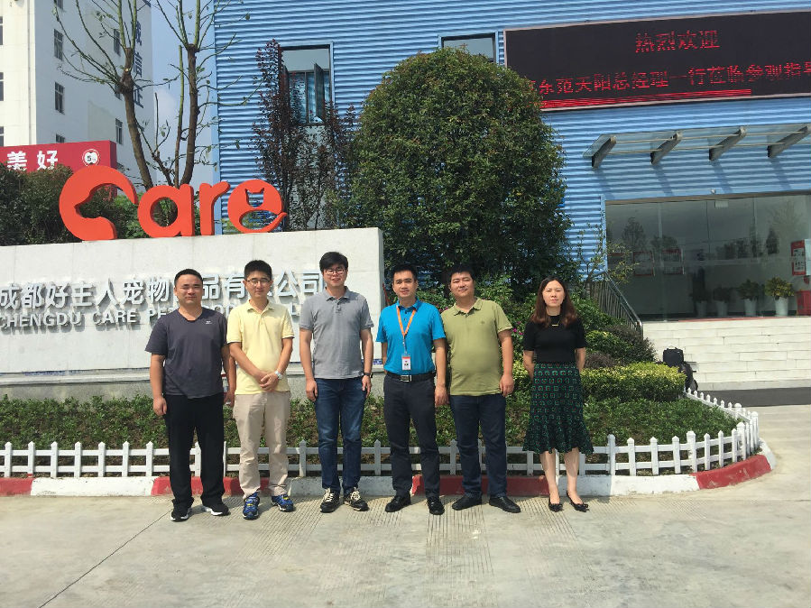 9月21日京東總部寵物農(nóng)業(yè)部總經(jīng)理范天陽、運(yùn)營經(jīng)理單鶴翔、采銷經(jīng)理張振龍一行蒞臨成都好主人寵物食品有限公司參觀,好主人寵物食品有限公司總經(jīng)理?xiàng)詈楹?、副總?jīng)理王寧等熱情接待并座談。