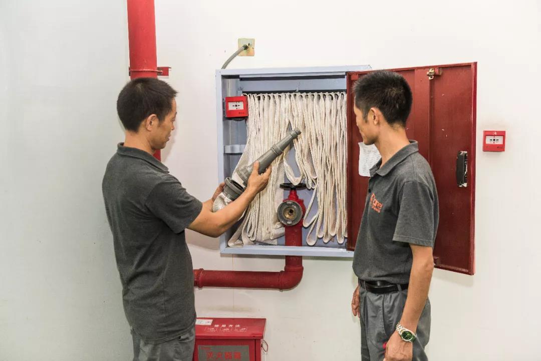 車間主任與安全管理員檢查消防設(shè)備