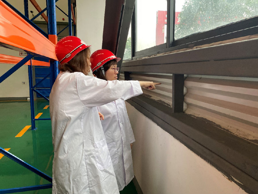 期間,公司檢查組對(duì)生產(chǎn)車間內(nèi)窗戶及彩鋼棚頂進(jìn)行逐一排查,并清點(diǎn)了防洪沙袋、手電筒等應(yīng)急物資。多日連續(xù)降雨導(dǎo)致空氣濕度較大,檢查組對(duì)通風(fēng)設(shè)施進(jìn)行了全面排查以保障原料及成品庫(kù)房濕度達(dá)標(biāo);電工專業(yè)相關(guān)人員對(duì)廠區(qū)線路進(jìn)行逐一排查,確保廠區(qū)用電安全。