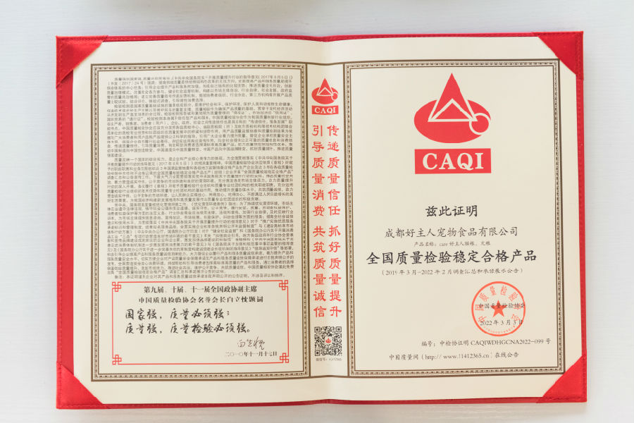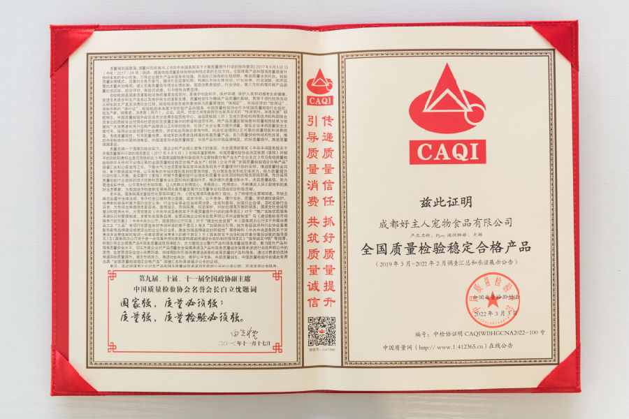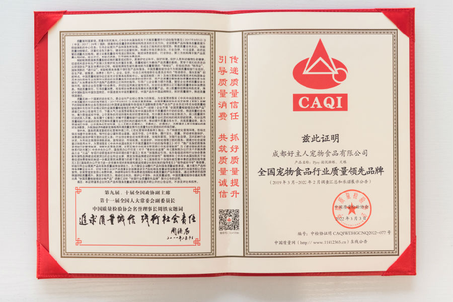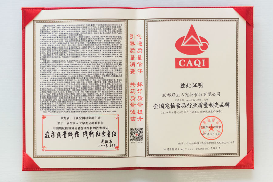 1、獲得“全國(guó)寵物食品行業(yè)質(zhì)量領(lǐng)先品牌”證書