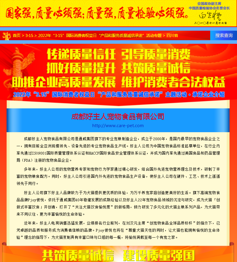 中國(guó)質(zhì)量網(wǎng)刊登好主人公司