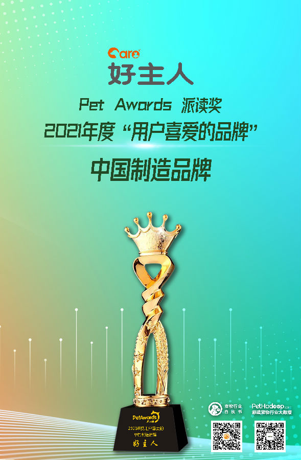 2022年3月31日,由中國(guó)畜牧業(yè)協(xié)會(huì)寵物產(chǎn)業(yè)分會(huì)、中國(guó)獸醫(yī)協(xié)會(huì)指導(dǎo)調(diào)研的《2021年中國(guó)寵物行業(yè)白皮書(shū)》和派讀寵物行業(yè)大數(shù)據(jù)平臺(tái)主辦,聯(lián)合雄鷹京寵展、天貓、以及寵物行業(yè)自媒體聯(lián)盟共同評(píng)選的PetAwards派讀獎(jiǎng)2021年度“用戶喜愛(ài)的品牌”獲獎(jiǎng)名單正式發(fā)布。