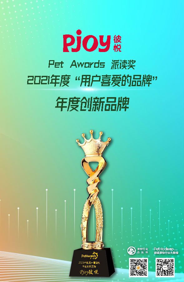 好主人公司旗下雙品牌皆獲得年度獎(jiǎng)項(xiàng):好主人品牌獲得2021年度“中國(guó)制造品牌”獎(jiǎng)項(xiàng);高端寵物食品品牌Pjoy彼悅獲得2021年度“創(chuàng)新品牌”獎(jiǎng)項(xiàng)!