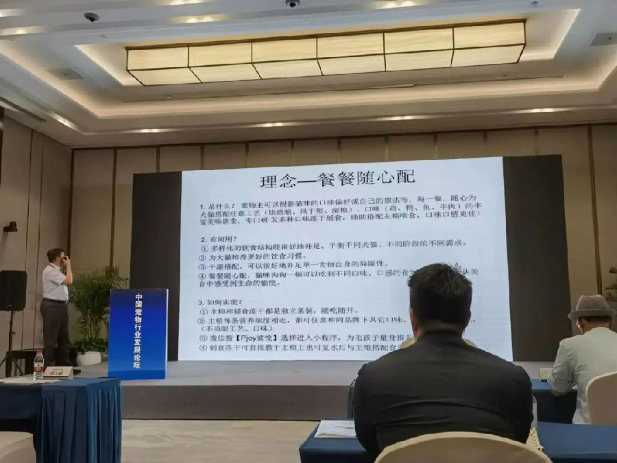 林教授也著重向參會(huì)代表介紹了Pjoy彼悅“餐餐隨心配”理念的優(yōu)勢(shì)所在。作為寵物食品行業(yè)新的創(chuàng)新概念,“餐餐隨心配”讓寵物主可以根據(jù)貓咪的口味偏好或自己的想法,每一餐都能隨心為犬貓搭配任意工藝(烘干糧、風(fēng)干糧、濕糧)、口味(雞、鴨、魚(yú)、牛肉)的豐富美味飲食,同時(shí)再搭配專門(mén)研發(fā)的各種口味的凍干輔食,為寵物帶來(lái)了營(yíng)養(yǎng)、口味、適口性上的多重享受,很好的補(bǔ)足、平衡了不同犬貓、不同階段的不同需求。