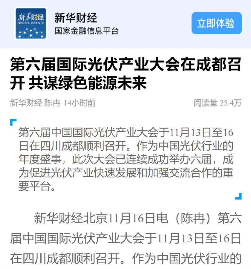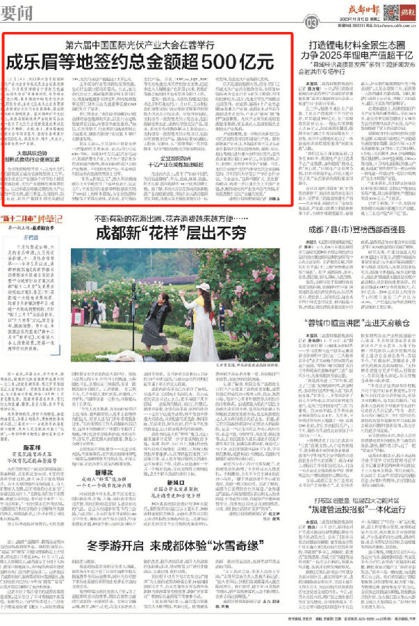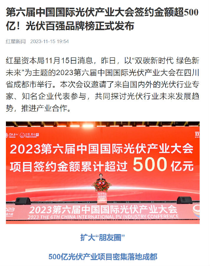 四川日?qǐng)?bào)、四川電視臺(tái)、四川觀察、成都日?qǐng)?bào)、紅星新聞、成都商報(bào)、封面新聞、華西都市報(bào)等主流媒體;21世紀(jì)經(jīng)濟(jì)報(bào)道、新京報(bào)、界面新聞、財(cái)聯(lián)社、財(cái)經(jīng)網(wǎng)、英才雜志、期貨日?qǐng)?bào)等財(cái)經(jīng)證券媒體;中國(guó)經(jīng)營(yíng)報(bào)、證券市場(chǎng)周刊、時(shí)代傳媒、長(zhǎng)江商報(bào)、經(jīng)濟(jì)觀察報(bào)、每日經(jīng)濟(jì)新聞、華夏時(shí)報(bào)、金融界、InfoLink、中國(guó)經(jīng)濟(jì)網(wǎng)、雪球、國(guó)際能源網(wǎng)、索比光伏網(wǎng)、北極星太陽(yáng)能光伏網(wǎng)、全球光伏、能源一號(hào)、華夏能源網(wǎng)、世紀(jì)新能源網(wǎng)、ofweek太陽(yáng)能光伏網(wǎng)、能源雜志、光伏們、黑鷹光伏、光伏資訊、solarzoom、光伏盒子、趕碳號(hào)科技、能源嚴(yán)究院、光伏見聞、新能薈、能源圈、草根光伏、能源思享匯、綠能新媒、光伏新觀察等媒體推出了多篇生動(dòng)翔實(shí)、精彩紛呈的報(bào)道,從不同角度詮釋了本屆光伏產(chǎn)業(yè)大會(huì)對(duì)中國(guó)光伏發(fā)展的推動(dòng)作用,對(duì)全球綠色未來(lái)的引領(lǐng)意義。