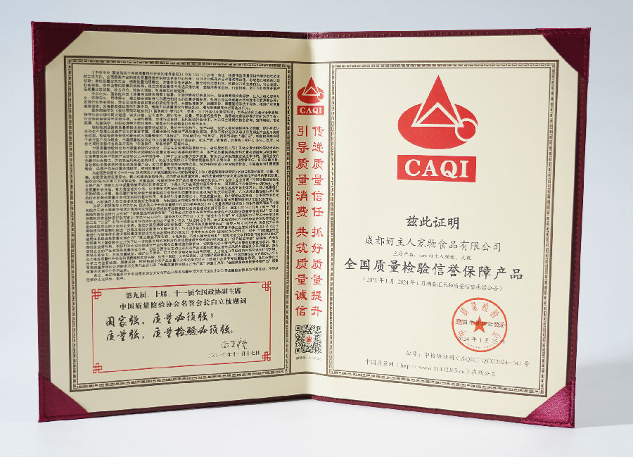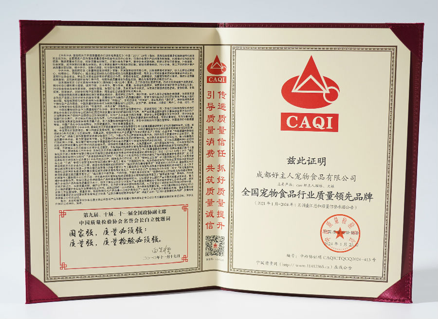 深耕寵物食品行業(yè)24年,好主人已多次獲得中國(guó)質(zhì)量檢驗(yàn)協(xié)會(huì)的肯定和認(rèn)可。頻獲殊榮,意味著國(guó)家級(jí)質(zhì)量專業(yè)機(jī)構(gòu)和媒體對(duì)好主人產(chǎn)品質(zhì)量、服務(wù)品質(zhì)、品牌影響力及誠信經(jīng)營(yíng)理念的持續(xù)高度認(rèn)可。這份厚重的肯定,離不開好主人長(zhǎng)期堅(jiān)持品質(zhì)升級(jí)、對(duì)產(chǎn)品質(zhì)量的嚴(yán)格管理!