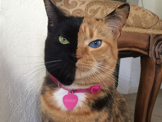 生物學(xué)家說,這種異常規(guī)則的毛色劃分非常罕見,可能與基因相關(guān)。研究貓基因的加利福尼亞大學(xué)教授萊斯利·萊昂斯說,維納斯發(fā)育過程中,可能半邊臉的細(xì)胞全部隨機(jī)選擇黑色,另半邊選擇黃色,然后它們?cè)谀樦虚g相遇。
